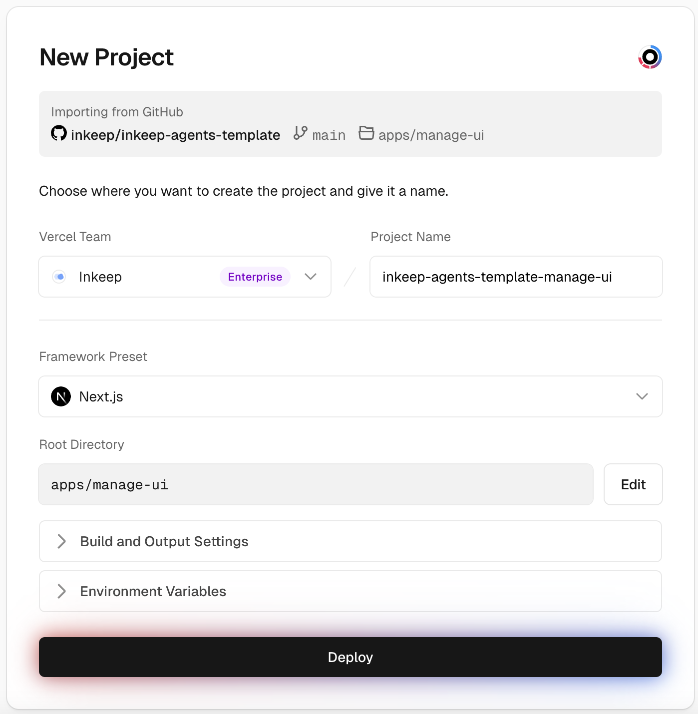 Step 8: Create a Vercel project for Manage UI